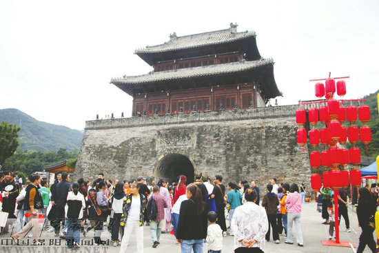 游客在報恩寺景區(qū)觀看表演