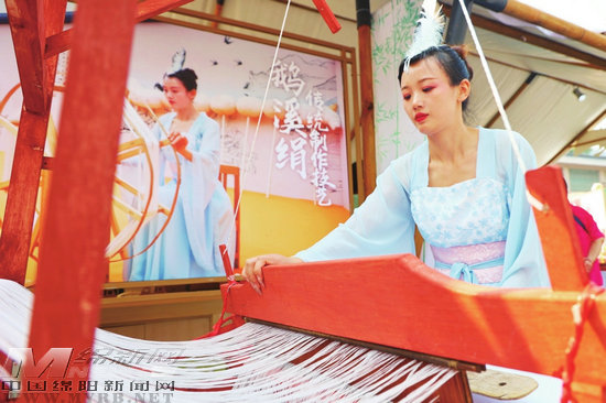 9月28日上午10時(shí),身著漢服的西安市民李夢(mèng)齊架起“長(zhǎng)槍短炮”,圍著鹽亭非遺展館門前的絲綢織布機(jī)看了又看、拍了又拍,定格點(diǎn)點(diǎn)滴滴,“我非常喜歡這類手工技藝,這次活動(dòng)讓我充分感受到了絲綢之源的風(fēng)土人情,有機(jī)會(huì)一定去鹽亭走走,更多地了解嫘祖故里。”