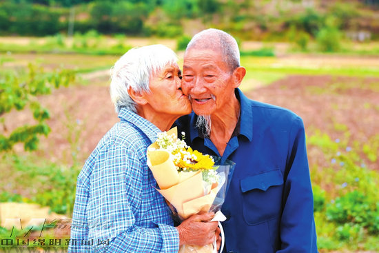 “婆婆爺爺,我?guī)湍銈冋硪幌乱路?,拍照更精神?rdquo;記者來到百歲老人禹金安家中時(shí),社工們正在為老人和他的妻子張庭秀老人整理衣服、梳妝打扮。“看鏡頭,茄子!”“咔嚓”一聲后,兩人幸福的笑臉定格在這一瞬間,記錄下了愛情最美的樣子。