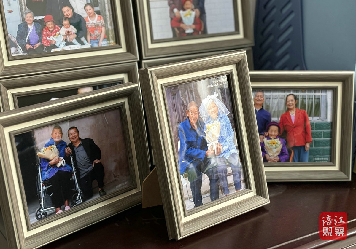 “婆婆爺爺,我?guī)湍銈冋硪幌乱路?,拍照更精神?rdquo;在百歲老人禹金安家,社工為他和妻子張庭秀整理衣服、梳妝打扮。“看鏡頭,茄子!”幾聲咔嚓聲響后,鏡頭記錄下兩人幸福的笑容。