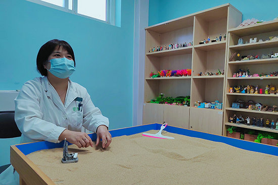 在成癮醫(yī)學中心,一間病房的玻璃門上畫滿了醫(yī)務人員的漫畫像。“這是一位酒癮患者為了感謝幫她治療疾病的醫(yī)務人員畫的,是個年輕女孩,她已經(jīng)治療出院了。”該院成癮醫(yī)學中心病區(qū)主任楊清艷介紹,針對網(wǎng)絡、游戲、賭博、購物等行為成癮及藥物、煙酒等物質(zhì)依賴患者,成癮醫(yī)學中心可以提供綜合診療方案。除藥物治療外,這里有很多行為療法,可以玩沙盤游戲、唱歌跳舞,甚至來場“劇本殺”。