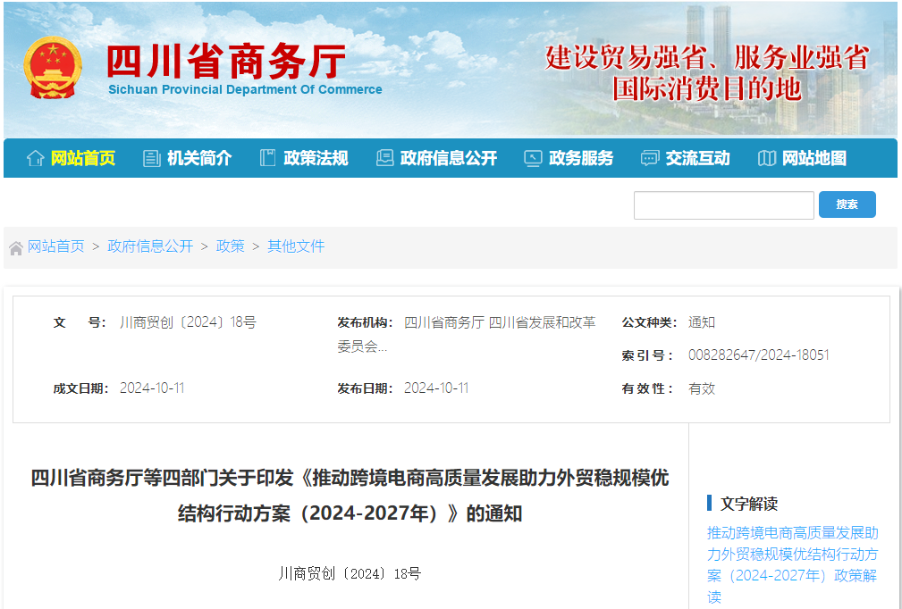 四川省商務廳等四部門關于印發(fā)《推動跨境電商高質量發(fā)展助力外貿穩(wěn)規(guī)模優(yōu)結構行動方案(2024-2027年)》的通知