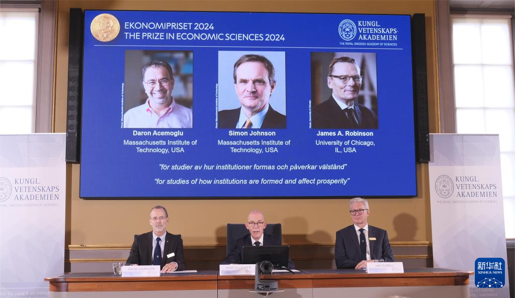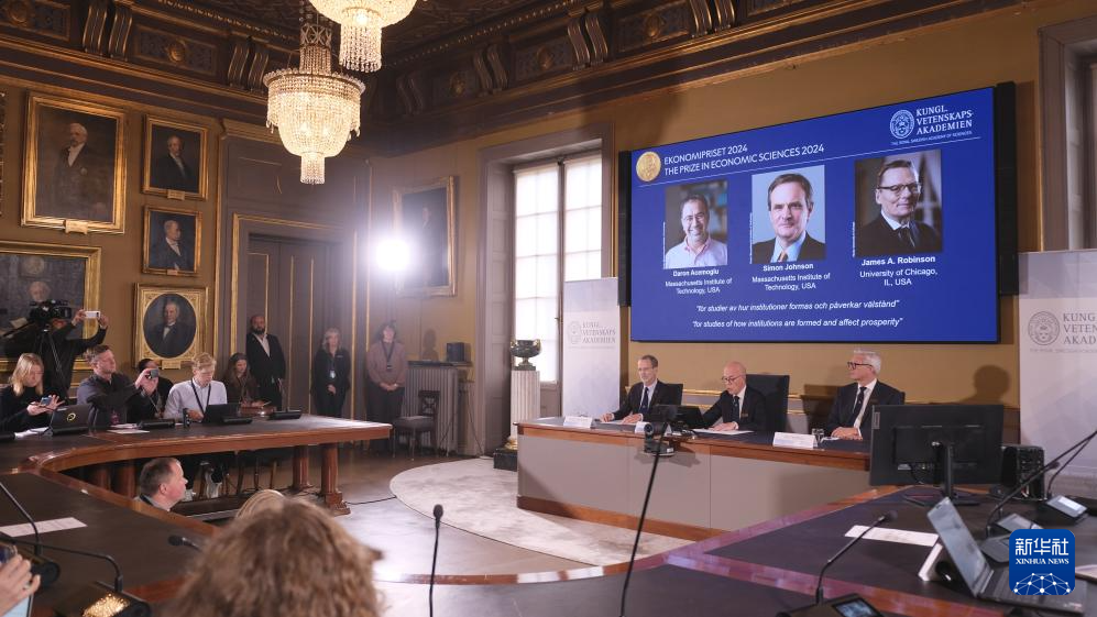 新華社斯德哥爾摩10月14日電(記者張玉亮 陳靜)瑞典皇家科學(xué)院14日在斯德哥爾摩宣布,將2024年諾貝爾經(jīng)濟(jì)學(xué)獎(jiǎng)授予三位來自美國大學(xué)的經(jīng)濟(jì)學(xué)家達(dá)龍·阿杰姆奧盧、西蒙·約翰遜和詹姆斯·魯濱遜,以表彰他們在關(guān)于制度如何形成并影響經(jīng)濟(jì)繁榮研究領(lǐng)域的突出貢獻(xiàn)。