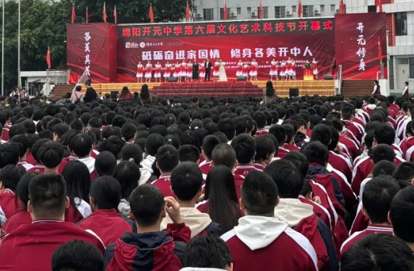 10月10日上午,綿陽市開元中學(xué)在學(xué)校運動場隆重舉行了以“砥礪奮進家國情,修身各美開中人”為主題的2024年第六屆校園文化藝術(shù)科技節(jié)開幕式。全校5000余名師生參加,區(qū)委教育工委委員、區(qū)教體局黨組成員、副局長顧曉東等相關(guān)領(lǐng)導(dǎo)出席開幕式。