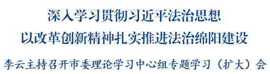 綿陽新聞網(wǎng)訊 10月15日,市委理論學(xué)習(xí)中心組舉行專題學(xué)習(xí)(擴大)會,集中學(xué)習(xí)習(xí)近平法治思想,市委副書記、市長李云主持會議并講話。他強調(diào),要深入學(xué)習(xí)貫徹習(xí)近平法治思想和黨的二十屆三中全會精神,全面落實省委十二屆六次全會部署要求,以改革創(chuàng)新精神扎實推進法治綿陽建設(shè),為推動高質(zhì)量發(fā)展提供堅強法治保障。