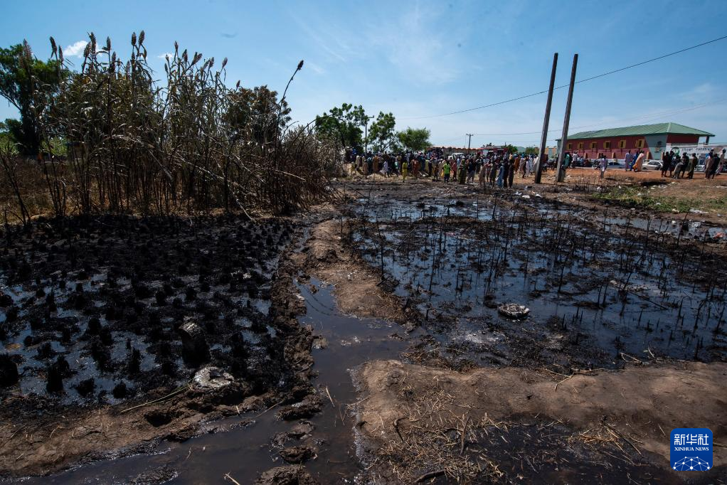 10月16日,在尼日利亞馬吉亞鎮(zhèn),人們聚集在油罐車爆炸事故現(xiàn)場。新華社/美聯(lián)