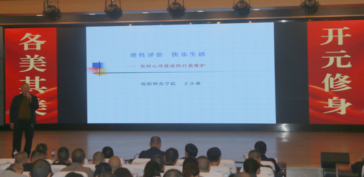 心海揚(yáng)帆,培訓(xùn)啟航。2024年10月14日下午,綿陽市開元中學(xué)特邀請(qǐng)到綿陽師范學(xué)院心理學(xué)副教授、綿陽市教育心理學(xué)會(huì)常務(wù)副會(huì)長、綿陽市心理咨詢師協(xié)會(huì)副會(huì)長王小林教授,在該校和美樓六樓學(xué)術(shù)廳開展了以“理性評(píng)價(jià),快樂生活”為主題的教師心理健康教育培訓(xùn)會(huì),全體教師參加。