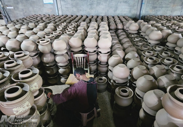 走進花廟陶業(yè)工廠,鄧忠華正在琢磨泥壇瓦罐,一塊普通的泥巴,在他的掌心揉捏下逐漸變得柔軟而富有韌性,仿佛被賦予了生命。