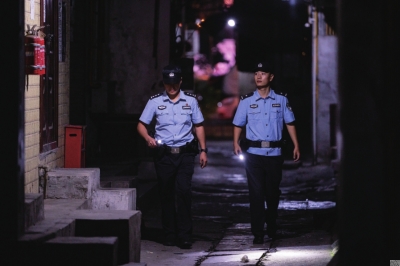 2024年8月9日,綿陽(yáng)市公安局涪城區(qū)分局工區(qū)派出所民警在涪城區(qū)沿江一巷巡邏守護(hù)。
