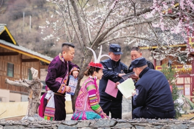 2023年3月26日,平武縣白馬藏族鄉(xiāng)派出所民警在藏寨開(kāi)展防范電信網(wǎng)絡(luò)詐騙宣傳活動(dòng)。