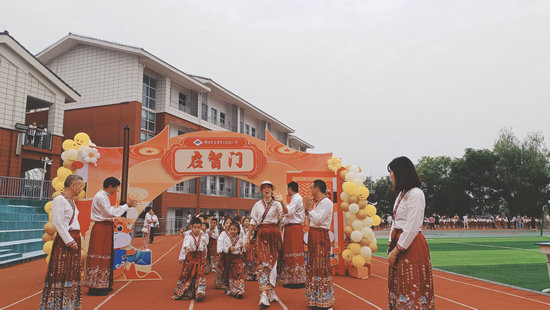 富樂三小的歡樂運(yùn)動(dòng)場(chǎng)上,一年級(jí)新生身著中國傳統(tǒng)漢服,精神抖擻,在老師的陪伴下,揮舞著雙手,走過啟智門。該校校長蔣義為孩子的“開筆禮”致辭發(fā)表了熱情洋溢的致辭。