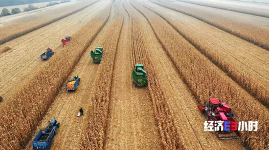 吉林是玉米種植大省。位于松遼平原腹地的梨樹縣被譽為“東北糧倉”。最近,這里的300多萬畝玉米也進(jìn)入了收獲期。田間作業(yè)的收割機能夠把玉米的外皮直接剝掉,并跟秸稈一起粉碎還田。