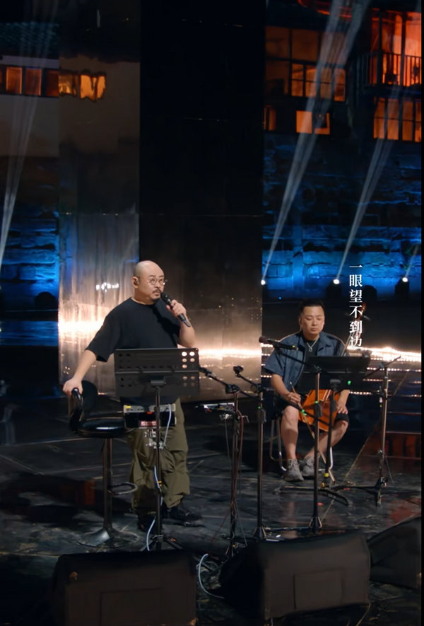 刀郎在家鄉(xiāng)資中舉辦線上演唱會直播截圖。