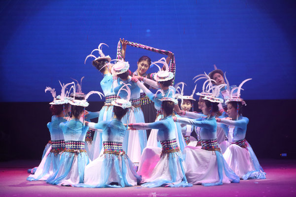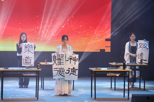 在最后的“潤(rùn)之聲”美育文化節(jié)成果匯報(bào)展演中,通過精選全院學(xué)生書法、器樂、舞蹈、歌唱等美育項(xiàng)目中的部分精品節(jié)目,全方位展現(xiàn)了學(xué)院學(xué)子的美育素養(yǎng)。漢語國(guó)際教育學(xué)生書法作品展示,配合藝術(shù)團(tuán)帶來的古箏表演,給現(xiàn)場(chǎng)營(yíng)造了一種高山流水、古色古香的氛圍;音樂表演專業(yè)學(xué)生將第十屆大學(xué)生藝術(shù)展演活動(dòng)獲獎(jiǎng)舞蹈作品《母親的花腰帶》再次搬上舞臺(tái),精湛唯美的表演帶現(xiàn)場(chǎng)觀眾領(lǐng)略動(dòng)人的羌族民俗文化;學(xué)院青年歌唱家唐翰章老師攜手學(xué)生演唱《領(lǐng)航》,高亢激昂的歌聲激人奮進(jìn)。