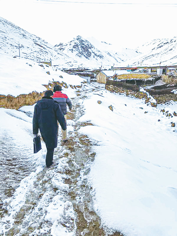 雖說是“搬到鄉(xiāng)所附近”,但西藏的空間尺度畢竟不同,宋玉剛每次出門家訪,大半時間仍要耗在顛簸的土路上。