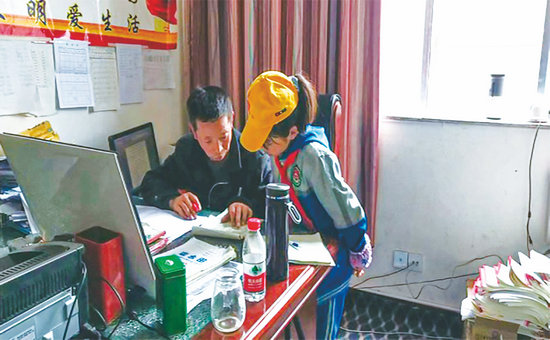 宋玉剛在辦公室輔導學生作業(yè)。受訪者供圖