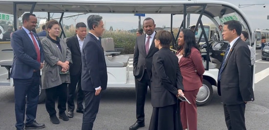 埃塞俄比亞總理阿比考察天府農業(yè)博覽園,并向工作人員詢問農作物種植和收成情況。川觀新聞資料圖