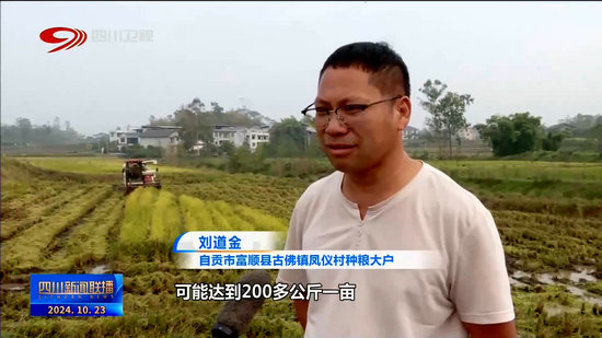 自貢市富順縣古佛鎮(zhèn)鳳儀村種糧大戶 劉道金:再生稻還是(穩(wěn))起來了,可能達到200多公斤一畝,今年種水稻的利潤可能有100多萬元。