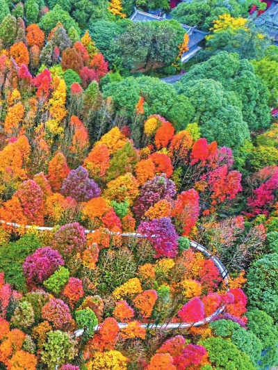 秋天的竇圌山如一幅被打亂的油畫(huà)調(diào)色盤(pán),肆意上色,描繪出獨(dú)屬于秋天的絢爛。最佳觀賞期是10月下旬-11月中旬。
