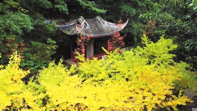 三臺(tái)琴泉寺的銀杏披上金黃色外衣