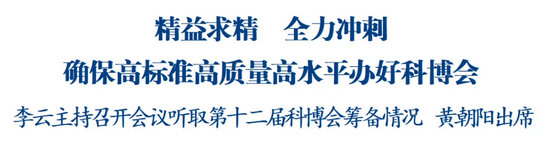 在聽取科博會(huì)籌備情況匯報(bào)后,李云指出,本屆科博會(huì)是首次全面實(shí)行市場化辦會(huì)。自籌備工作啟動(dòng)以來,各主辦單位、指導(dǎo)單位、承辦單位主動(dòng)作為、通力協(xié)作,整體工作推進(jìn)有力有序有效。要始終堅(jiān)持市場運(yùn)作、政府支持、社會(huì)參與的辦會(huì)模式,緊盯籌備工作時(shí)間進(jìn)度,及時(shí)協(xié)調(diào)解決籌備過程中出現(xiàn)的困難和問題,全力以赴抓好各環(huán)節(jié)、各板塊目標(biāo)任務(wù)落實(shí),努力把本屆科博會(huì)辦得更加精彩、更有特色、更富實(shí)效。
