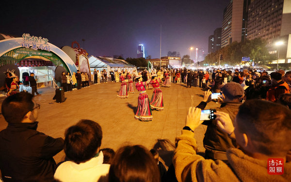 夜幕下的石家莊文化廣場同樣熱鬧非凡。淳樸的歌聲、震撼的鼓點,奏出民族文化體驗、傳播、傳承的優(yōu)美曲風(fēng)?;鹧媾噬瑹崆槊褡甯栉?、民族鼓樂、集體鍋莊舞等表演接連進行,讓觀眾沉醉于濃厚的民族風(fēng)情之中。大家手拉手圍著篝火邊唱邊跳,用歌聲傾訴熾熱情懷,以舞蹈展現(xiàn)精神寄托,歡笑之間,兩地市民之間的距離越來越近,情感越來越深!