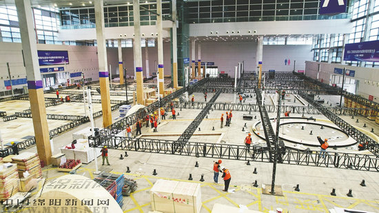 綿陽國際會展中心A館展區(qū)搭建進行中