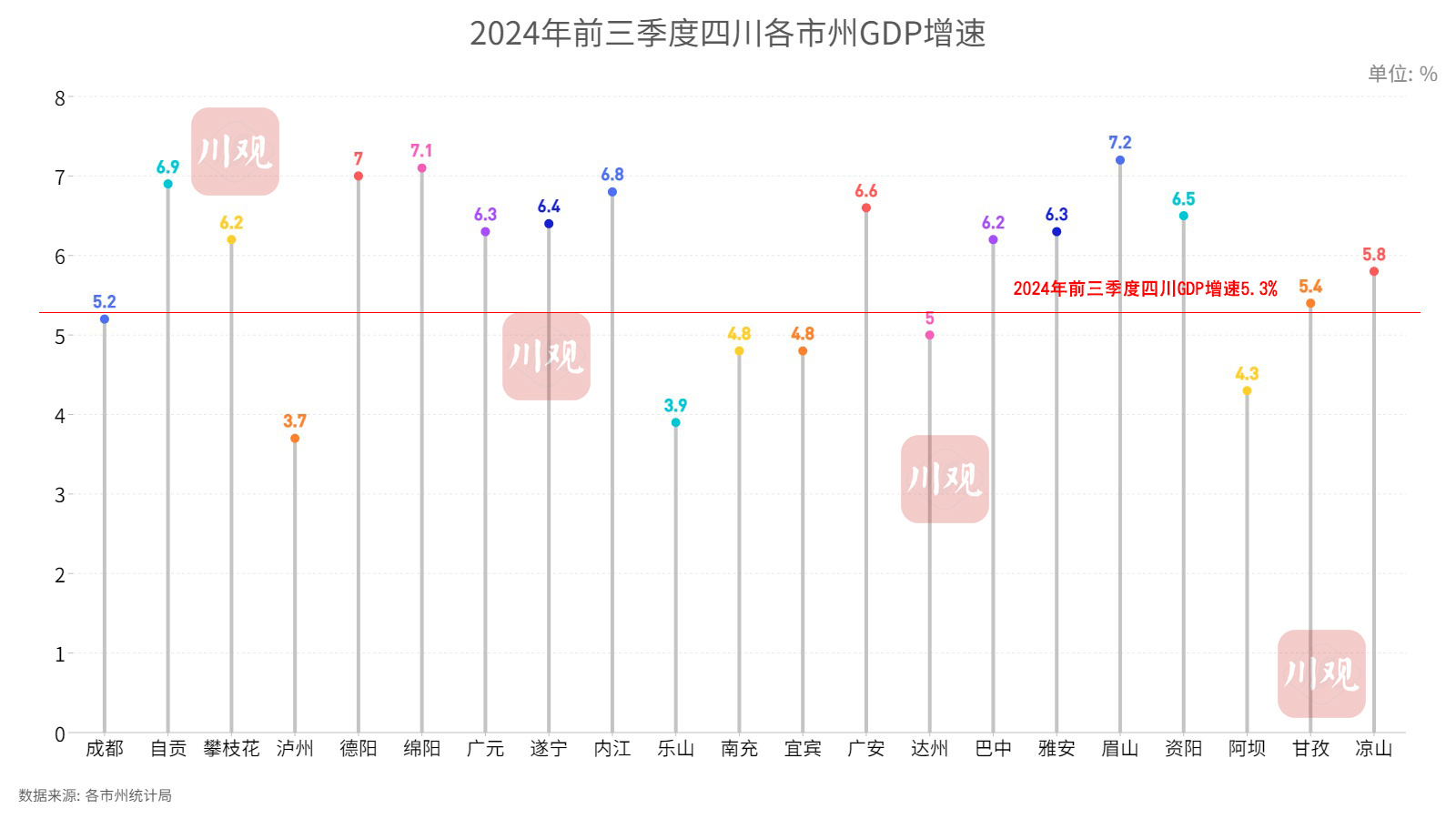 穩(wěn)定型選手的表現(xiàn)同樣值得關(guān)注。川觀新聞記者注意到,在一季度、上半年、前三季度的GDP增速排名中,眉山以9.5%、8.5%和7.2%的增速,連續(xù)三次排名全省第一,GDP總量全省第二的綿陽,增速始終占據(jù)著全省第二的位置。