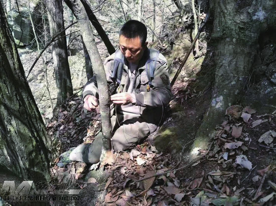巡護(hù)隊(duì)隊(duì)員楊明正在拆除獵套