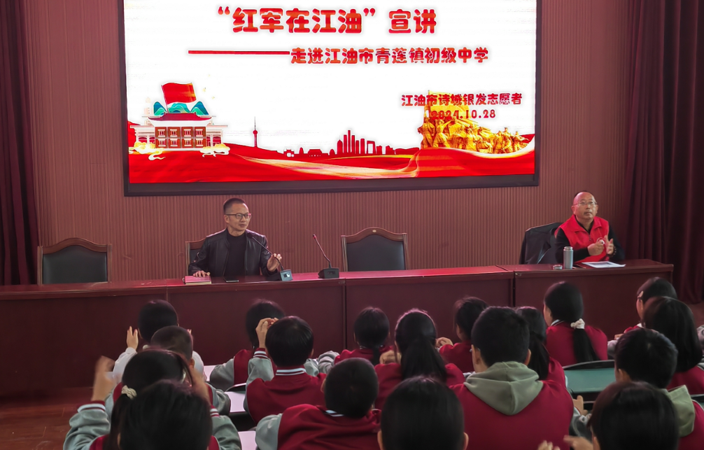 在紀(jì)念中國(guó)工農(nóng)紅軍出發(fā)90周年之際,10月28 日下午,江油市青蓮鎮(zhèn)初級(jí)中學(xué)舉辦了以“宣講紅軍故事,汲取奮進(jìn)力量”為主題的2024年秋“紅軍在江油”故事宣講會(huì),原江油市扶貧局局長(zhǎng)敖國(guó)民同志主講,江油市老干部服務(wù)中心副主任、關(guān)工委副主任張茂濤同志參加大會(huì),副校長(zhǎng)桂陽(yáng)主持。