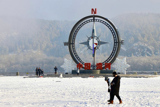 游客在黑龍江漠河游玩。新華社記者徐凱鑫 攝