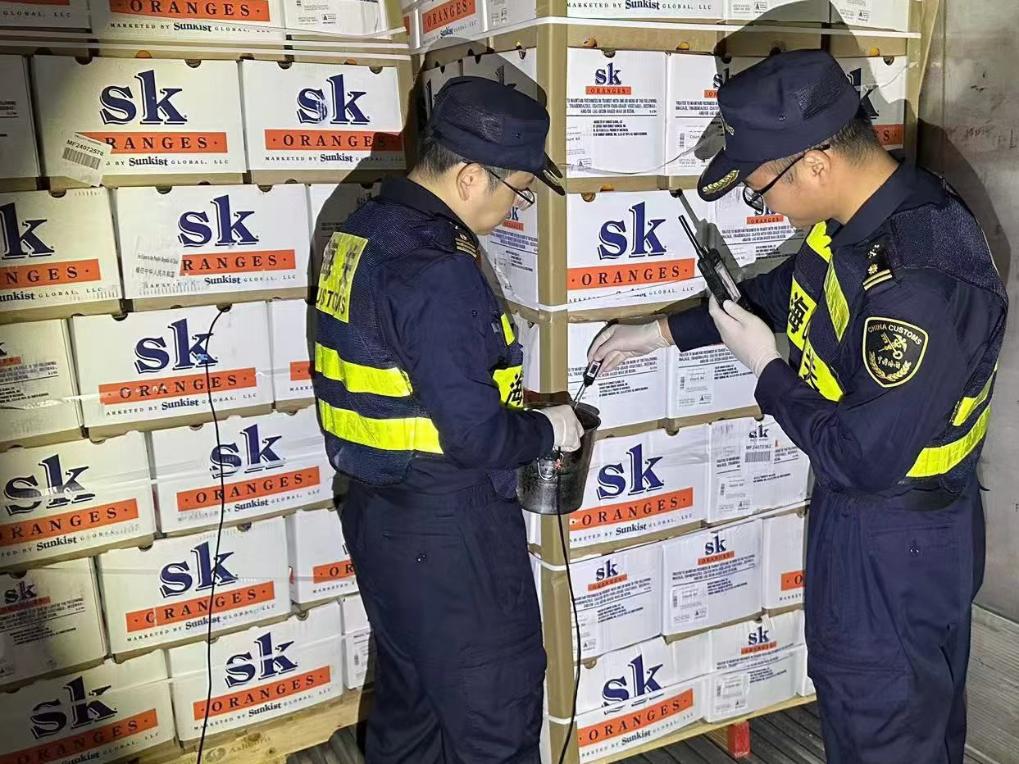 以一批進(jìn)口鮮橙為例,歷經(jīng)40天遠(yuǎn)洋運輸,抵達(dá)上海港后,航運公司將運輸過程中冷處理數(shù)據(jù)直接上傳至海關(guān)跨境貿(mào)易大數(shù)據(jù)平臺,短短幾秒鐘,數(shù)千條數(shù)據(jù)即可完成智能比對,如果顯示合格,進(jìn)口鮮橙可立即運往進(jìn)境水果指定監(jiān)管場地接受查檢。在嚴(yán)格把關(guān)的前提下,進(jìn)口鮮橙一兩天即可出現(xiàn)在上海及長三角區(qū)域的水果市場或電商平臺上。