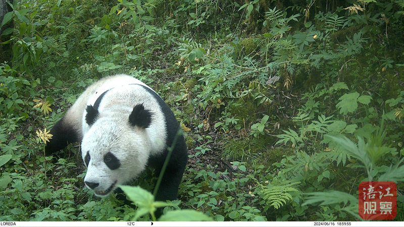 在拍攝的其中一段視頻中,一只成年野生大熊貓好奇地朝著鏡頭走來,一邊打量一邊對著紅外相機(jī)“自拍”打卡。此外,還拍攝到了不同地段、不同個(gè)體的野生大熊貓?jiān)谏种杏崎e散步的多段視頻。
