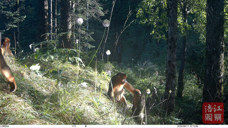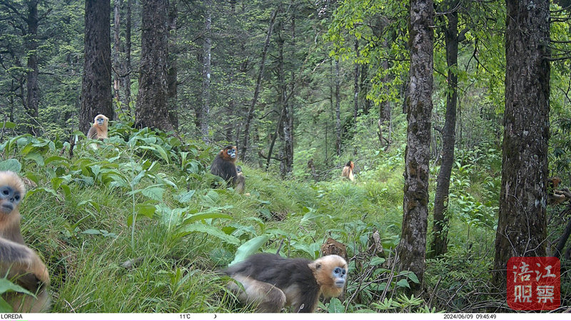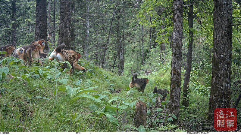還發(fā)現(xiàn)了一群川金絲猴組隊(duì)曬娃的畫面