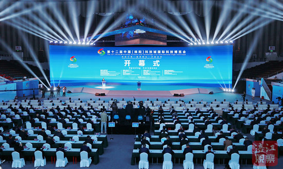 10時55分許,劉曉峰宣布:第十二屆中國(綿陽)科技城國際科技博覽會開幕。