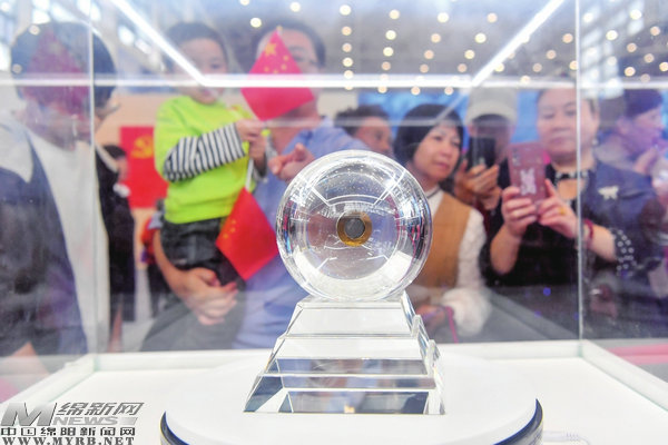 月球土壤樣品吸引觀眾圍觀(記者王勇攝)
