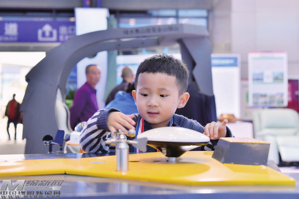 高科技展品吸引孩子好奇的目光