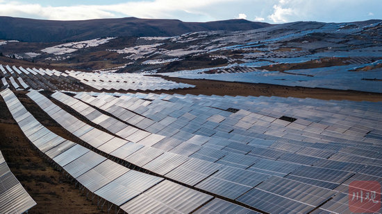 甘孜州道孚縣色卡鄉(xiāng)亞日村正在建設(shè)中的光伏電站。