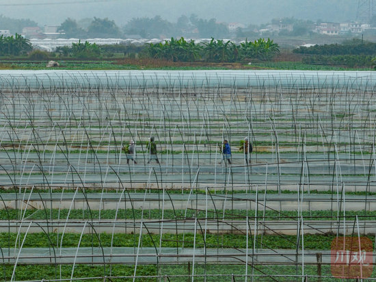 宜賓市南溪區(qū)長(zhǎng)江村蔬菜種植大棚。