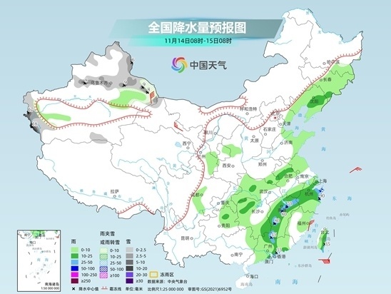 具體來(lái)看,今天新疆北部和西部山區(qū)等地部分地區(qū)有小到中雪或雨夾雪,其中,新疆阿勒泰山區(qū)、沿天山一帶和西部高海拔地區(qū)等地有大到暴雪。東北地區(qū)中南部、西北地區(qū)東部、西南地區(qū)東部、華北東部、黃淮東部、江淮、江漢、江南、華南中部、臺(tái)灣島等地部分地區(qū)有小到中雨,其中,浙江東部、江西北部和西部、廣東北部和南部沿海、臺(tái)灣島東南部等地部分地區(qū)有大雨,局地暴雨。