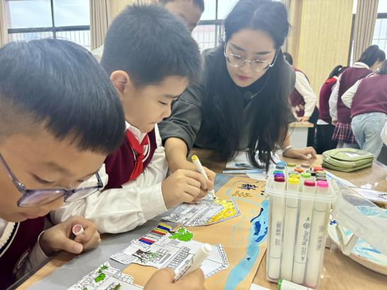 青年美術(shù)教師羅麗執(zhí)教的《色彩的色相》教學(xué)活動(dòng)讓孩子們暢游在色彩斑斕的世界,用雙手打造了屬于他們自己的“美麗村莊”,完成了一次大膽的創(chuàng)作之旅……