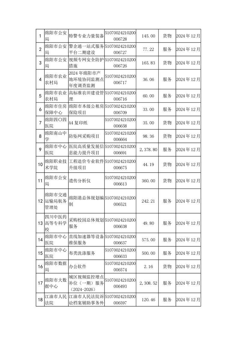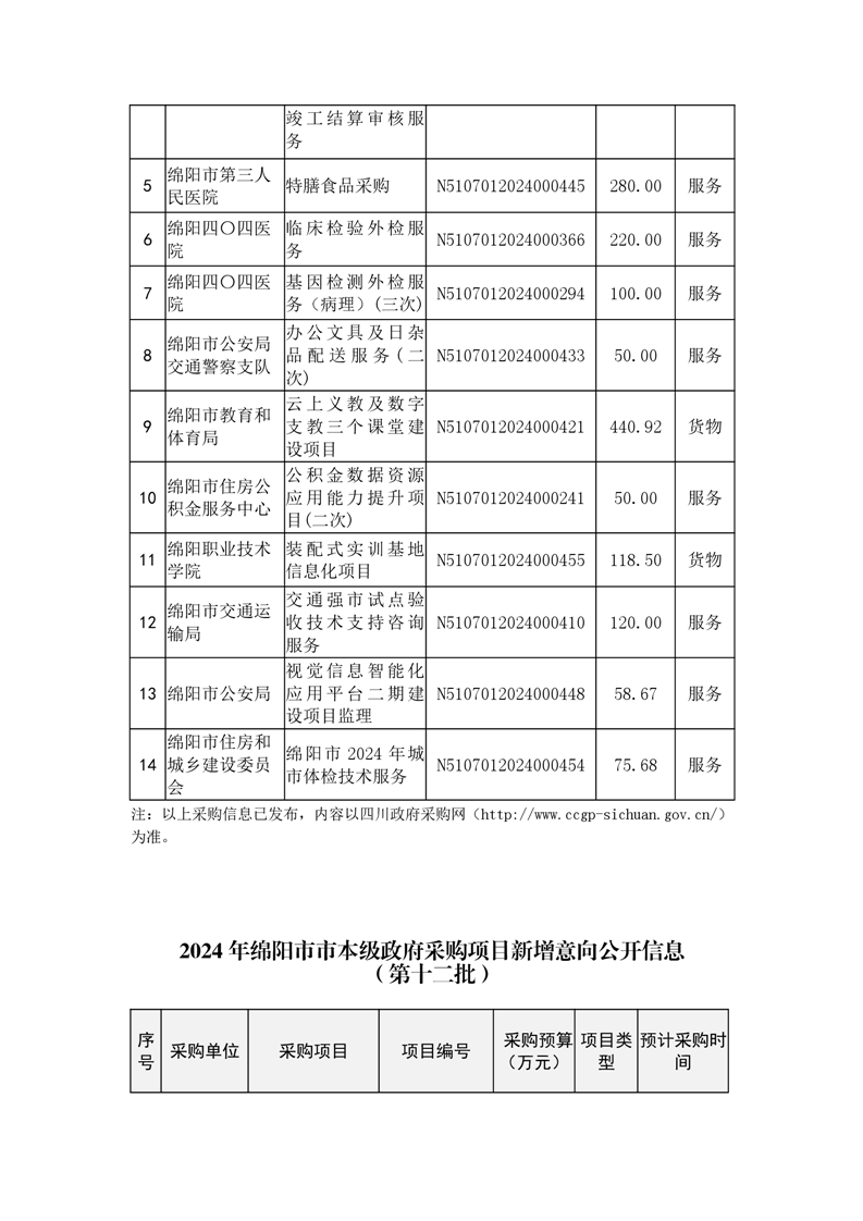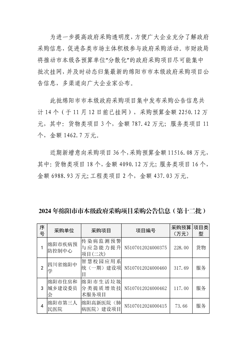 50個(gè)政府采購(gòu)項(xiàng)目的“機(jī)會(huì)清單” 出爐!(2024年第十二波) 綿陽(yáng)市市本級(jí)政府采購(gòu)項(xiàng)目信息動(dòng)態(tài)(2024年第十二批)