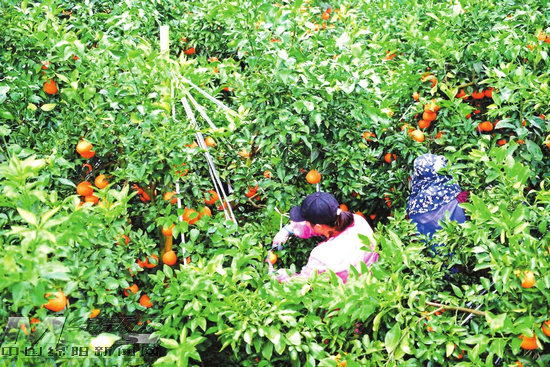 在安州柑橘現(xiàn)代農(nóng)業(yè)園內(nèi),果農(nóng)正在采摘柑橘。(記者 王勇 攝)