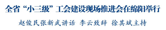 綿陽新聞網(wǎng)訊 11月21日,全省“小三級”工會建設(shè)現(xiàn)場推進(jìn)會在綿陽舉行,會議旨在進(jìn)一步增強(qiáng)做好“小三級”工會工作的政治自覺、思想自覺、行動自覺,真正讓“小三級”工會建起來、轉(zhuǎn)起來、活起來、強(qiáng)起來。省委常委、省總工會主席趙俊民,全國總工會書記處書記、黨組成員張新武出席會議并講話;市委副書記、市長李云出席會議并致辭;省總工會黨組書記、副主席徐其斌主持會議。