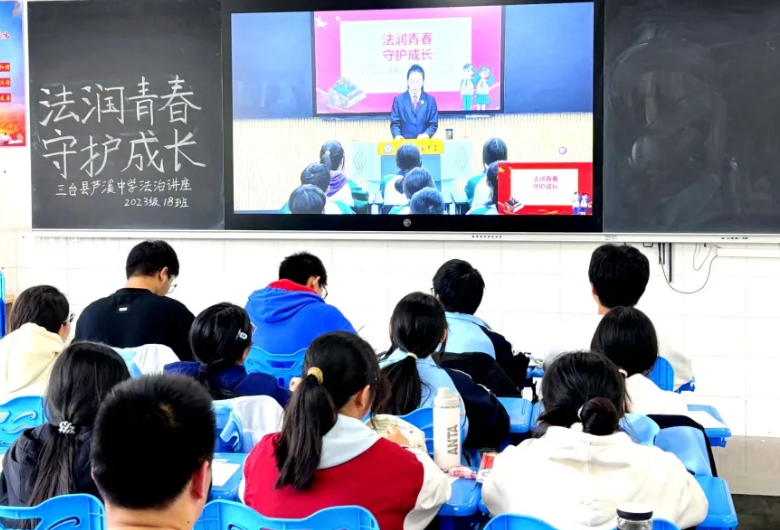 為了積極推進(jìn)法治校園、平安校園建設(shè),增強(qiáng)學(xué)生的法治觀念和安全意識,提高學(xué)生的安全防范能力及學(xué)法、知法、懂法、守法的良好習(xí)慣,筑牢預(yù)防未成年人犯罪的法治防線,11月14日,三臺縣蘆溪中學(xué)法治副校長三臺縣人民檢察院陳玥檢察長、羅明川主任、張助理三人一同到蘆溪中學(xué),開展了以“法潤青春 守護(hù)成長”為主題的2024年秋法治講座。