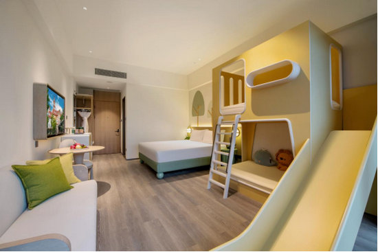 黑森林嘉途酒店,坐落于風(fēng)景如畫的國家級(jí)旅游度假區(qū)東部華僑城內(nèi),經(jīng)過升級(jí)改造后,更加凸顯了其作為親子度假酒店的獨(dú)特魅力。酒店擁有300間(套)客房,在被森林綠意環(huán)繞充滿童話感的五彩城堡中營造出溫馨的童趣空間,在保持原有歐式童話建筑風(fēng)格的基礎(chǔ)上,對(duì)客房、餐廳及配套設(shè)施進(jìn)行全面優(yōu)化升級(jí)。融入豐富的親子元素,無論是色彩繽紛的兒童餐廳,還是配備了滑梯、攀爬架、樹屋的萌趣客房,處處洋溢著童真與歡樂。全新升級(jí)的戶外泳池,配備了適合全年齡段的水上游樂設(shè)施,一鍵開啟充滿樂趣的戲水之旅。值得一提的是,酒店新落成一處占地超900平方米的兒童體驗(yàn)中心,巧妙地將兒童游樂園和托管區(qū)兩大功能區(qū)域融為一體,營造出一個(gè)互動(dòng)性強(qiáng)、充滿樂趣和探索的環(huán)境。酒店的AIO愛游玩團(tuán)隊(duì)致力于為親子家庭打造一個(gè)自由悠閑、寓教于樂的體驗(yàn)空間,讓遛娃變得輕松愉快。