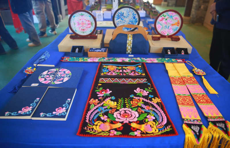 綿陽(yáng)市北川羌族自治縣曲山鎮(zhèn)石椅村羌繡產(chǎn)品。新華網(wǎng)發(fā)(精神文明報(bào) 袁矛 攝)