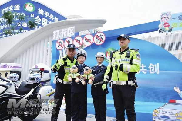 交警和孩子們一起開展交通安全宣傳