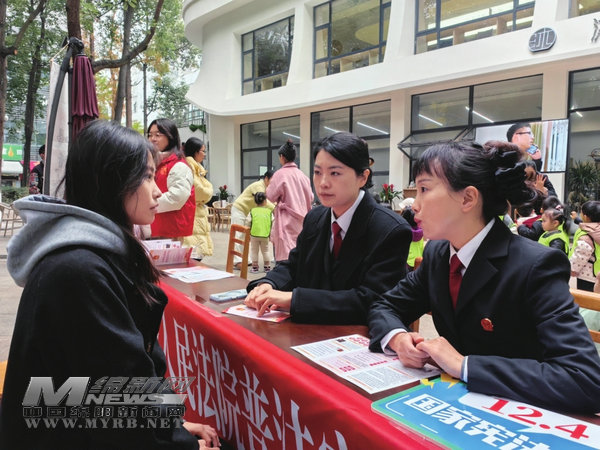 同法官一起“讀法”。在“12·4”國家憲法日普法宣傳及閱讀分享活動現(xiàn)場,綿陽教工幼兒園的老師帶著一群小朋友來到位于人民公園的市圖書館昭烈分館樓下的普法宣傳點,市中級人民法院的法官們向小朋友介紹憲法日的相關(guān)情況。在讀書分享環(huán)節(jié),法官們向讀者們推薦《想點大事》《法官說民法典》等書籍,結(jié)合自己的閱讀感悟、法院工作經(jīng)歷、生活中《民法典》等法律法規(guī)密切相關(guān)的事例與案例,與大家進行分享交流。