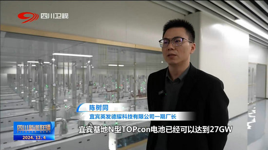 記者 徐蕓倩:這里是宜賓英發(fā)德耀的智慧工廠,在十萬(wàn)平方米的生產(chǎn)車(chē)間內(nèi),一天可生產(chǎn)450萬(wàn)片(電池),相當(dāng)于每0.8秒就能夠生產(chǎn)出這樣一張(電池)。就是這樣10克重量的電池片,它的光電轉(zhuǎn)化效率已突破27.02%。相當(dāng)于同單位的光能轉(zhuǎn)化更多的電,對(duì)于下游企業(yè)來(lái)說(shuō),也能夠大大提高經(jīng)濟(jì)效益。